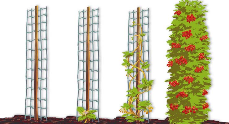 - I lunghi stoloni di questa fragola rampicante devono essere sostenuti contro un muro o attaccati a un tutore